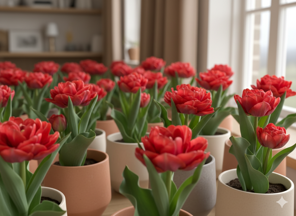 Додаткового зимового укриття кімнатні тюльпани не потребують — достатньо стабільної температури в приміщенні та легкого догляду.