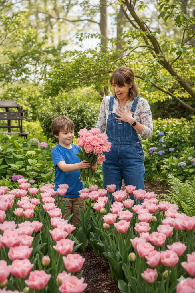 Ці тюльпани прокинуться одними з перших, наповнюючи сад ніжним рожевим цвітом.