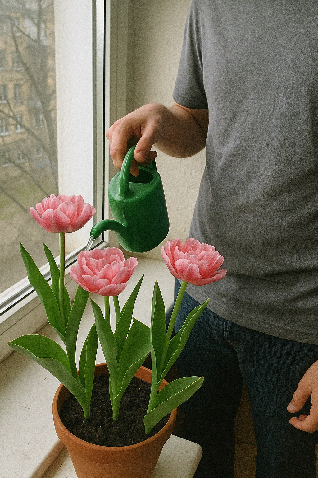 Поставте горщик на підвіконня з розсіяним сонцем — там бутони набирають найніжніший рожевий відтінок.